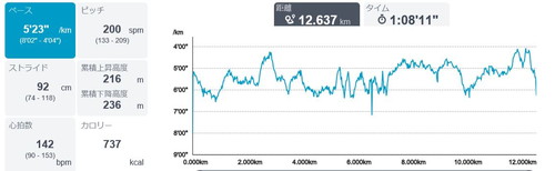 小っちゃくて見にくいけど、12.637kmの朝ランでした。