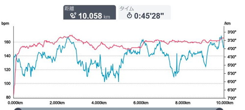 そんなこんなを繰り返しつつ、ラストをダッシュで駆け抜けた今朝の10km走。