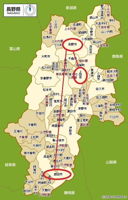 自宅の上田市から会社のある長野市、そして、今回応援に行った飯田市は、