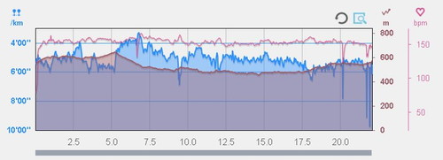 17km走で終えたそうな。(←もう、ハーフすらしんどい距離になってきたw)