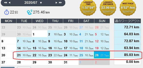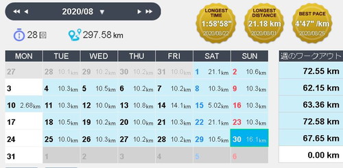 昨年なら、「週100km」が目標だったんですが、今ではこんなもんですね。