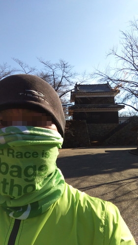 城内では、マスクしてないとまずいので、首につけたBUFFで口元を覆い、