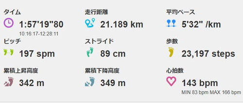 平均ストライドが1mに満たない「ちょこちょこ走り」の21km。
