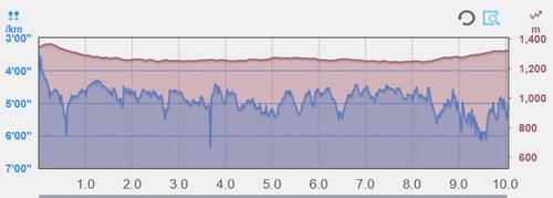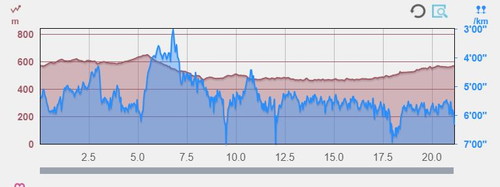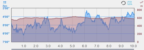 これでは、全然伝わりにくいですが、9km~10kmまでは、けっこうきつい坂道ランになりました。