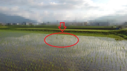 田んぼの中をちゃぷちゃぷと泳いでいる子がいました。