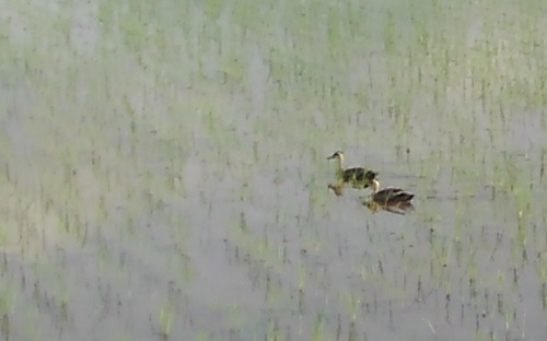 カルガモが泳ぐ中、田んぼの周りをぐるぐる回って、10.1kmのランニング。