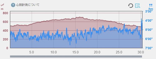 標高500mくらいから、標高700mくらいまで登って下りてくるだけという、変わったコースのおかげで、無事30kmを完走。