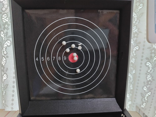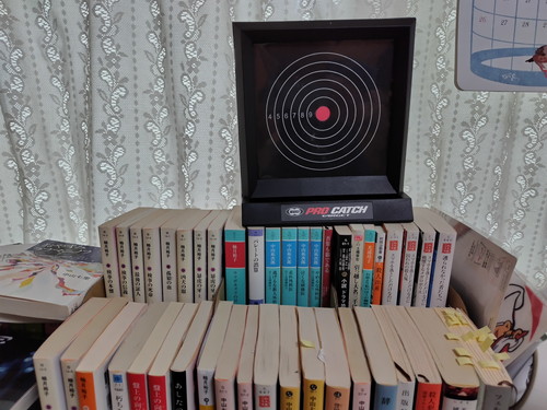 本の上に置かれたターゲットに向かって、