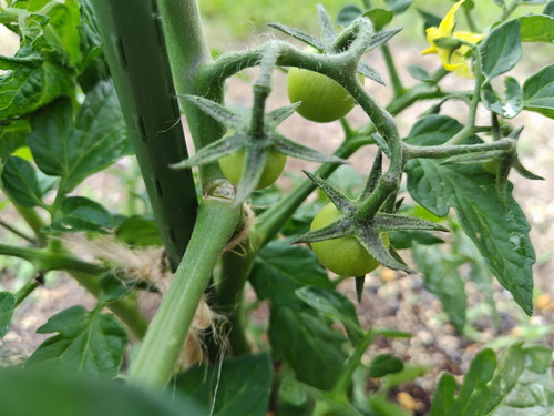 トマトのお手入れをして、