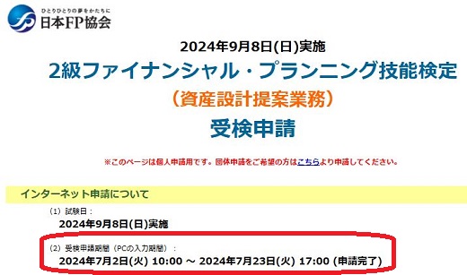 現在勉強中の試験の申込です。