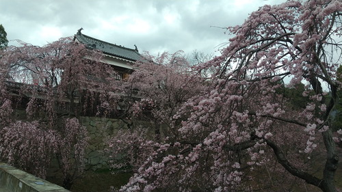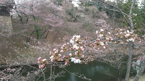早咲きの桜は満開で、城門の付近は桜で一杯でした。