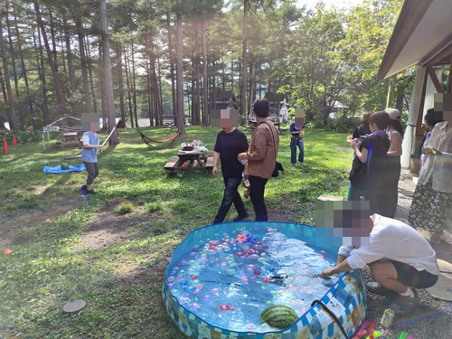 プールに入っている水風船を投げつけて遊んだりw(←投げつけられたww)