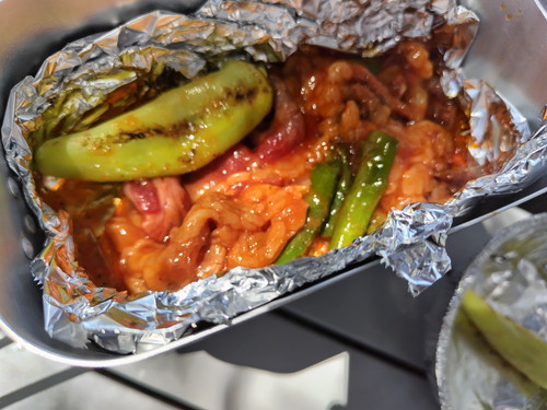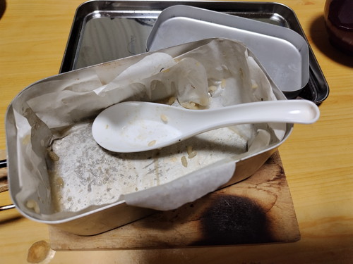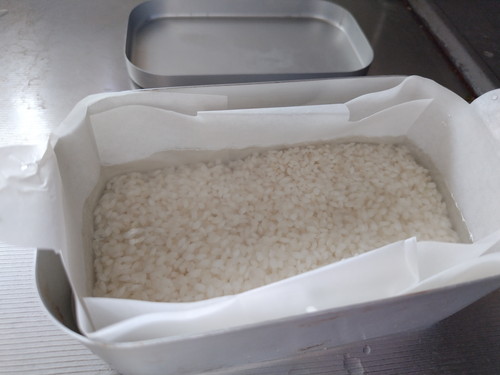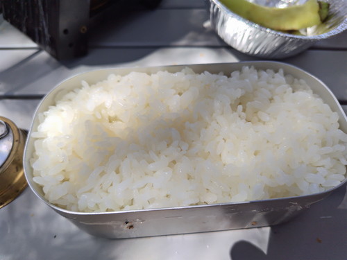 メスティンにクッキングシートを敷き、そこに米と水を入れ、