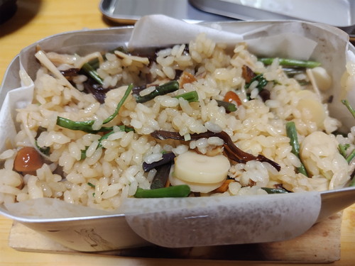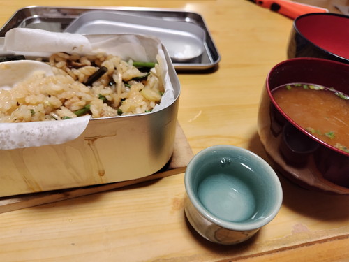 山菜の炊き込みご飯が完成! ☆-(ノ゚Д゚)八(゚Д゚ )ノイエーイ