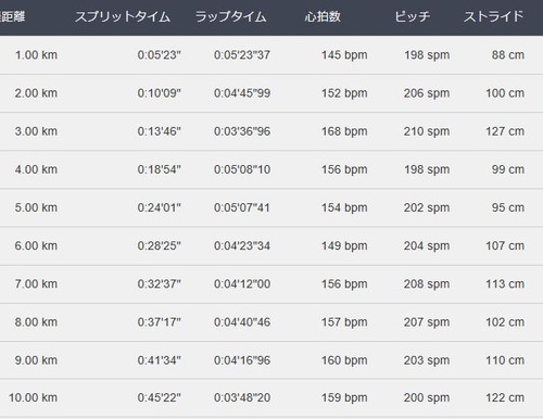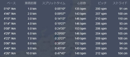 結果を見ても、平均ストライドが「99cm」しかなく、キロ4分台のペースで流した割には、とてもストライドが短かった結果です。