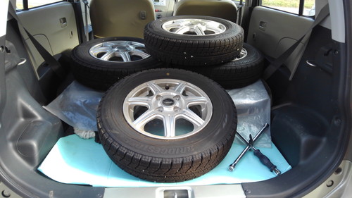 母は、車にタイヤを積んで、我が家に来ました。
