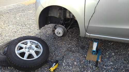 「母の車のタイヤ交換をする」