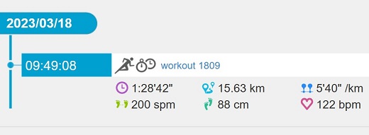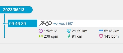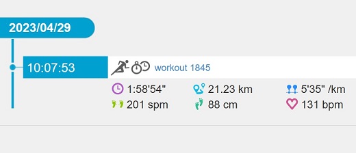 本日のラン 21.14km 2時間ジャスト(2時間ジョグ)