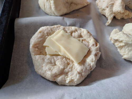 スライスチーズを1枚の半分の量をちぎって入れて、