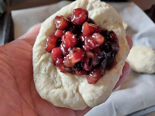 せっせと小豆を包み込んで(←生地に見える粒々は、ゴマです)