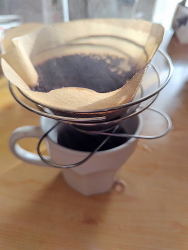 ミルで、せっせと細かく挽いて、フィルターでドリップして、