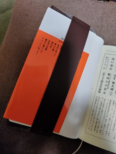 なんとか、ブックカバーの帯に裏表紙をひっかけて、