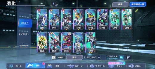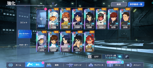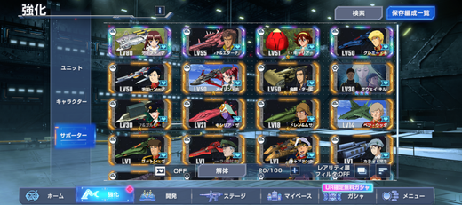 無課金でもURキャラがユニット13体、キャラ12体、サポートが4艦となりました。